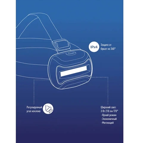Широкий угол свечения позволяет осветить всю видимую область. Идеален для равномерного ближнего освещения. Имеет два режима яркости и мигающий режим.
