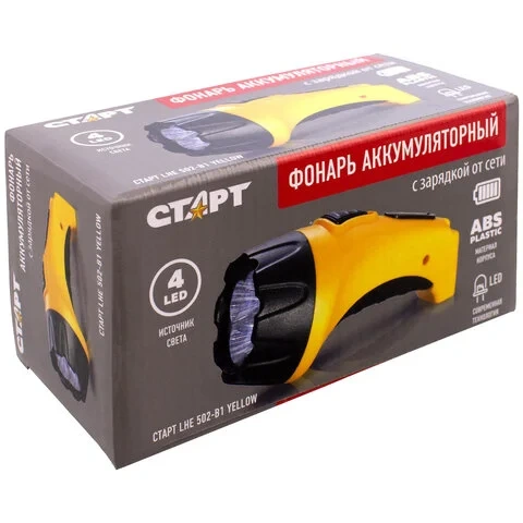 Покупка модели СТАРТ LHE 502-B1 позволяет сэкономить и на лампочках, и на батарейках. Основные «рабочие элементы» фонаря – 4 миниатюрных светодиода потребляют минимум энергии, что не мешает им выдавать яркий направленный луч.
