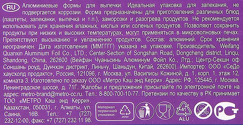 | Комплектация | форма алюминиевая - 100 шт. |