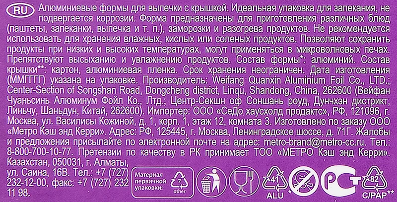 | Комплектация | форма алюминиевая с крышкой - 50 шт. |