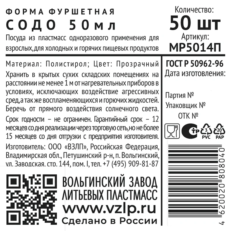 | Комплектация | форма для фуршета одноразовая - 50 шт. |