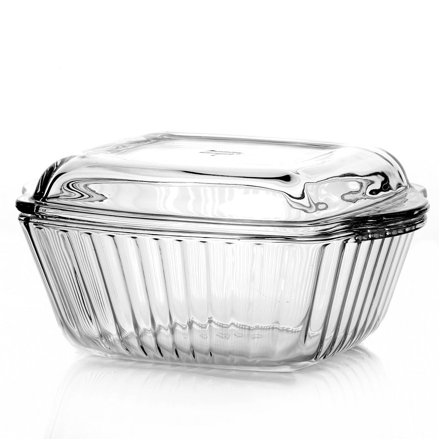Форма для запекания квадратная с крышкой изготовлена из жаропрочного стекла. Подходит для использования в СВЧ и духовке. Блюдо можно подавать прямо в форме. Нельзя использовать на открытом огне. Объем чаши 1.17 л, объем крышки - 0.435 л. Размер с учетом ручек - 204*160*70 мм. Можно готовить в крышке. Можно мыть в посудомоечной машине.