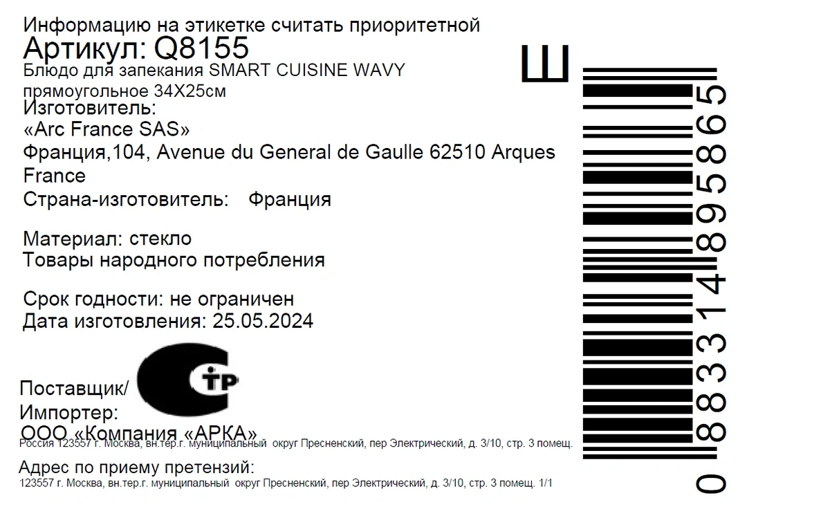 Блюдо для запекания Smart Cuisine Wavy прямоугольное 34X25см. Форма для запекания Smart Cuisine, производство французского бренда Luminarc. Изготовлена из опалового стекла, которое в 3 раза прочнее керамики. Предназначена для приготовления и подачи порционных запеканок, десертов и других блюд, которые готовятся в духовке. Можно мыть в посудомоечной машине.