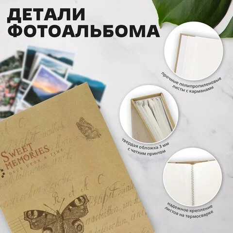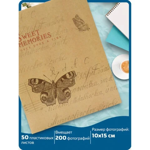 Фотоальбом BRAUBERG 'Бабочка, крафт' на 200 фото 10х15 см, твердая обложка, термосварка, 391164