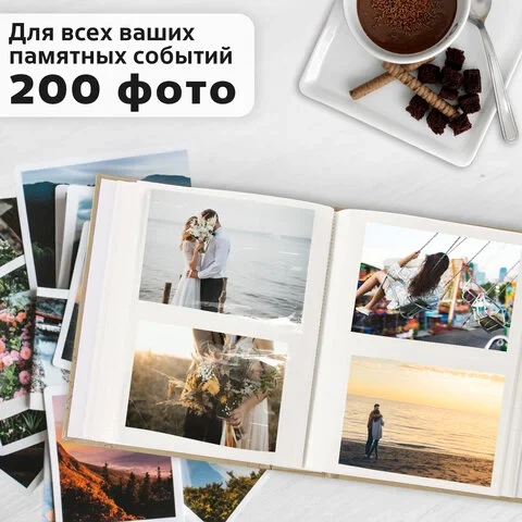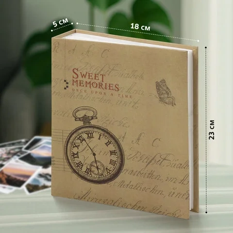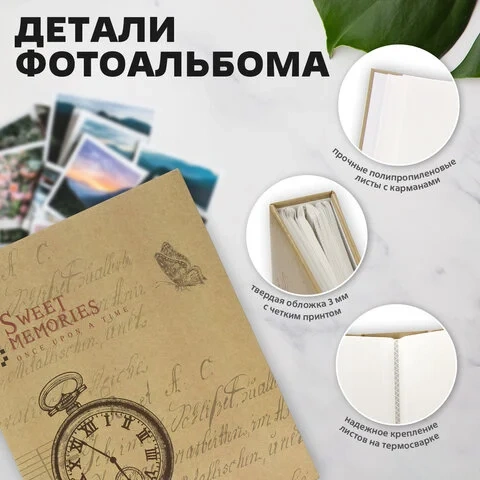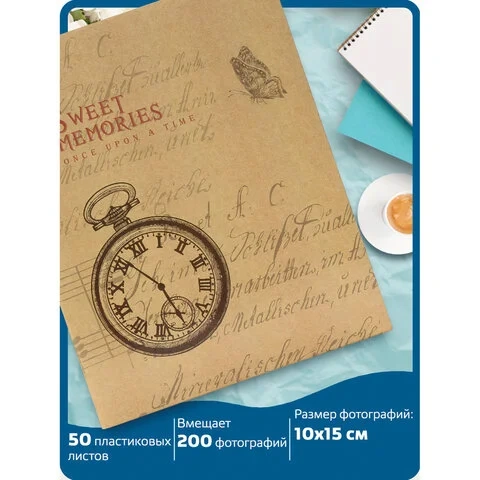 Фотоальбом BRAUBERG 'Часы, крафт' на 200 фото 10х15 см, твердая обложка, термосварка, 391165