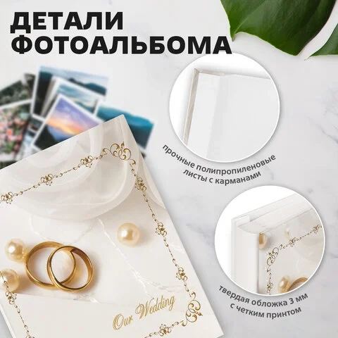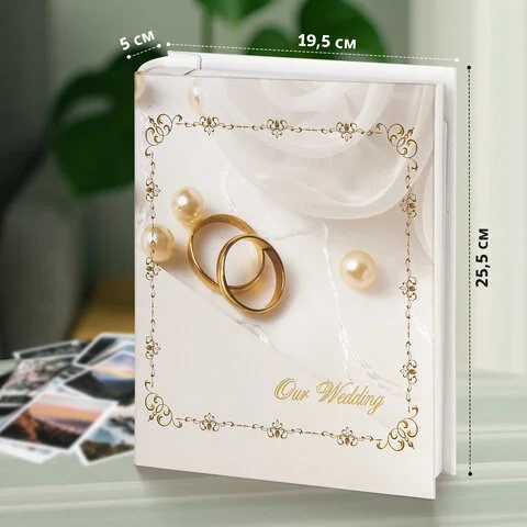Фотоальбом BRAUBERG 'Кольца и жемчуг' на 200 фото 10х15 см, твердая обложка, переплет, бокс, 391151