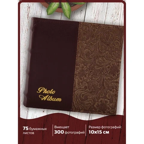 Фотоальбом Brauberg коричневый с узором, 300 фото, 10х15см