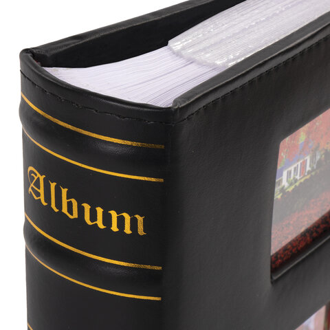 Фотоальбом BRAUBERG на 200 фото 10х15 см, под кожу, бумажные страницы, бокс, черный, 391191