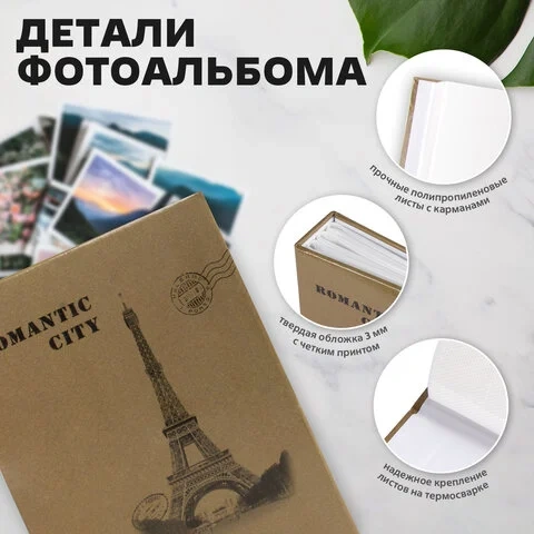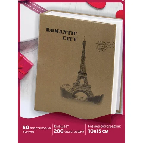 Фотоальбом BRAUBERG на 200 фото 10х15 см, твердая обложка, 'Париж', бежевый, 391122