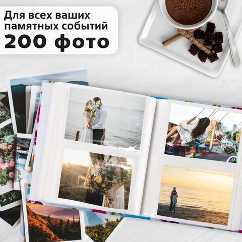 Фотоальбом BRAUBERG на 200 фото 10х15 см, твердая обложка, 'Цветочки', разноцветный, 391119