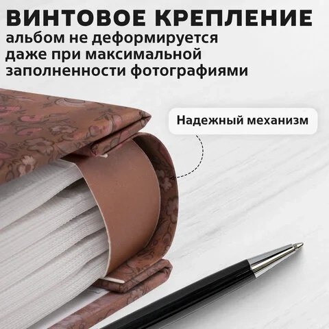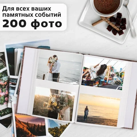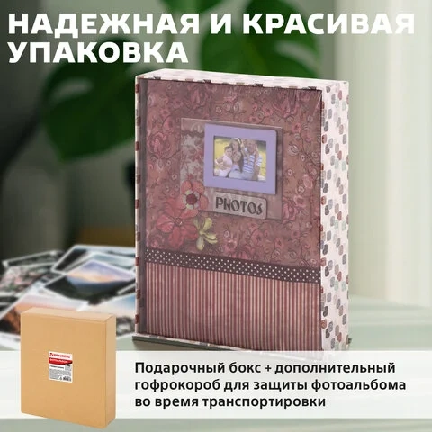 Фотоальбом BRAUBERG на 200 фотографий 10х15 см, твердая обложка, 'Семья', бокс, коричневый, 390673