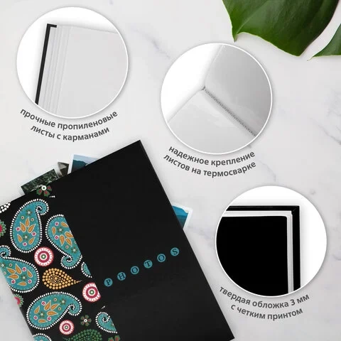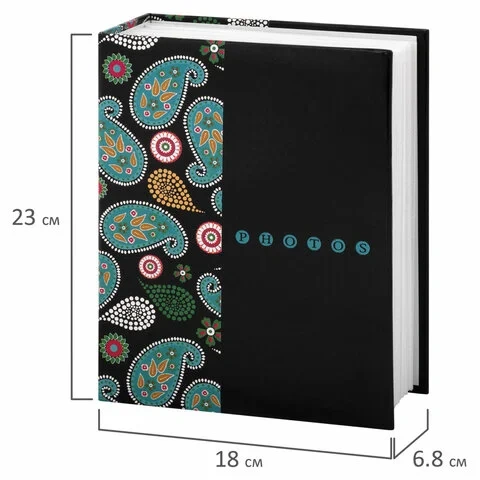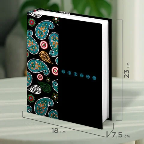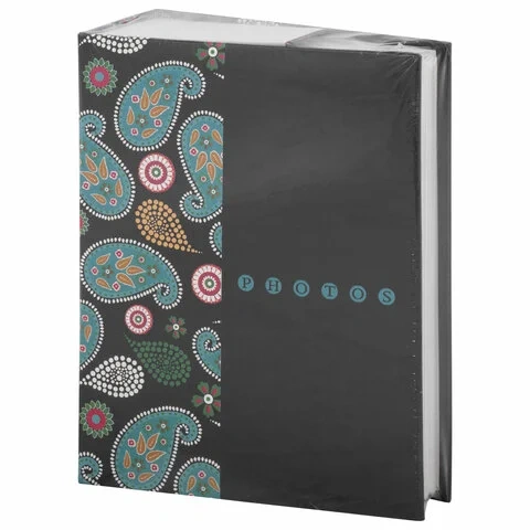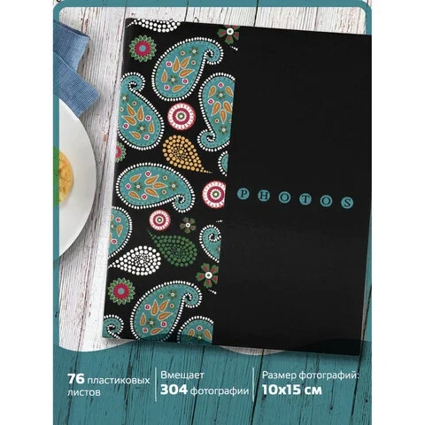 Фотоальбом BRAUBERG на 300+4 фотографии 10х15 см, твердая обложка, 'Пейсли', черный с бирюзовым, 390