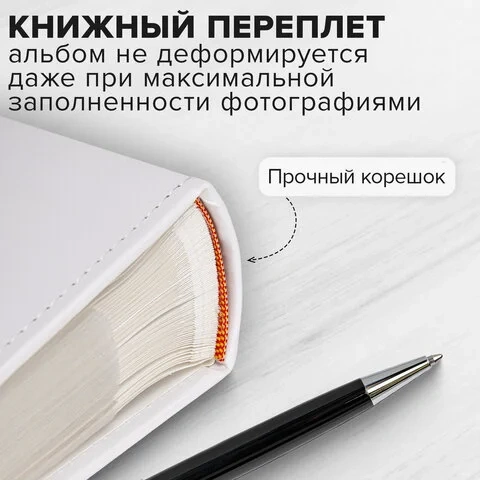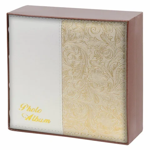 Фотоальбом BRAUBERG на 300 фото 10х15 см, под кожу, бумажные страницы, бокс, белый+золото, 391117