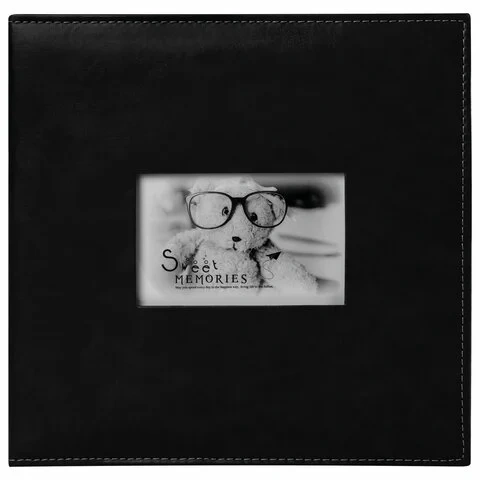Состоит из 20 магнитных листов размером 30х32 см, что позволяет комбинировать и размещать до 200 фотографий различных форматов: 10х15 см, 13х18 см, 18х24 см, 20х30 см. Обложка альбома черного цвета стилизована под кожу и декорирована рамкой, фотография в которой может быть заменена по желанию владельца. Фотоальбом на кольцах отличается повышенной прочностью и долгим сроком службы. Размер - 32,5х33,5 см.