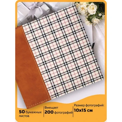 Фотоальбом BRAUBERG 'Шотландка' на 200 фото 10х15 см, под кожу, бумажные страницы, бокс, 391192