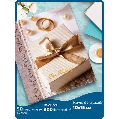 Фотоальбом BRAUBERG 'Свадебный подарок' на 200 фото 10х15 см, твердая обложка, переплет, бокс, 39115