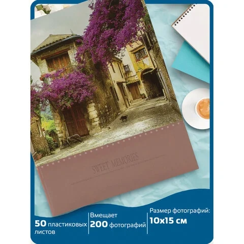 Фотоальбом BRAUBERG 'Цветущая улица' на 200 фото 10х15 см, твердая обложка, термосварка, 391163