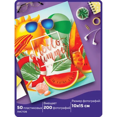 Фотоальбом BRAUBERG 'Здравствуй, лето' на 200 фото 10х15 см, твердая обложка, термосварка, 391170