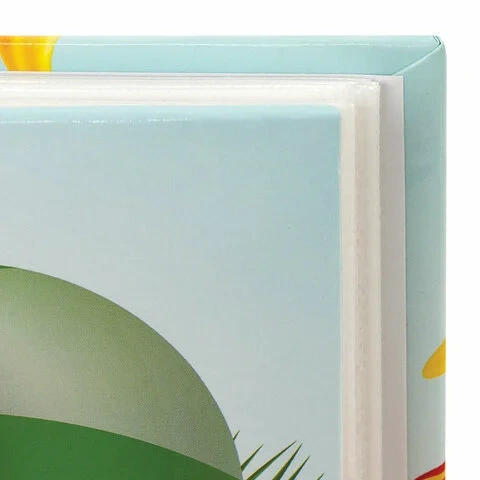 Состоит из 50 полипропиленовых листов размером 17,5х22 см с карманами и вмещает 200 фотографий размером 10х15 см по 2 штуки на странице. Обложка фотоальбома выполнена в жизнерадостном ярком дизайне. Размер - 18х23 см.