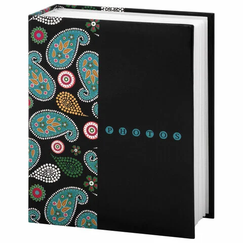 Фотоальбом BRAUBERG на 300+4 фотографии 10х15 см, твердая обложка, 'Пейсли', черный с бирюзовым, 390