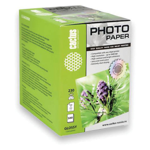 Фотобумага 10x15 см, 230 г/м2, 500 листов, односторонняя, глянцевая, CACTUS CS-GA6230500