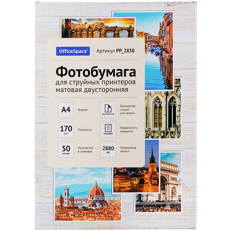 Фотобумага А4 для стр. принтеров OfficeSpace, 170г/м2 (50л) мат.дв.