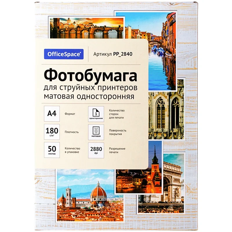 Фотобумага А4 для стр. принтеров OfficeSpace, 180г/м2 (50л) мат.одн.