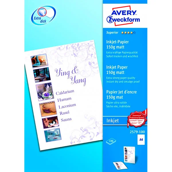 Фотобумага для струйных принтеров Avery Zweckform А4, 100 листов, 210x297мм, 100г/м2, белая матовая, 2579-100