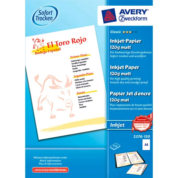 Фотобумага для струйных принтеров Avery Zweckform А4, 150 листов, 210x297мм, 110 г/м2, белая матовая, 2576-150