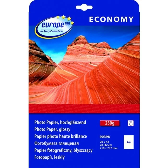 Фотобумага для струйных принтеров Avery Zweckform Европа-100 А4, 20 листов, 210х297мм, 230г/м2, белая глянцевая, 90398