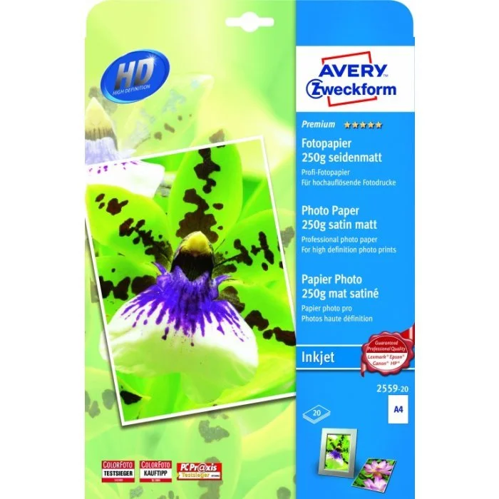 Фотобумага для струйных принтеров Avery Zweckform Премиум А4, 20 листов, 210x297мм, 250 г/м2, белая матовая, 2559-20