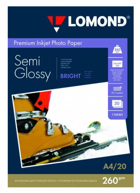 Фотобумага для струйных принтеров Lomond А4, 20 листов, 260 г/м2, полуглянцевая