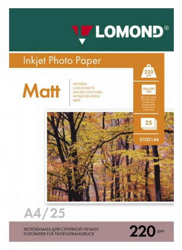 Фотобумага для струйных принтеров Lomond А4, 25 листов, 220 г/м2, матовая, 0102148