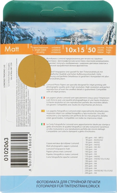 Фотобумага для струйных принтеров Lomond А6, 50 листов, 180г/м2, матовая, 102063