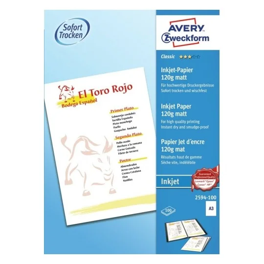 Фотобумага для струйных принтеров Avery Zweckform А3, 100 листов, 110 г/м2, матовая, 2594-100
