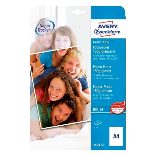 Фотобумага для струйных принтеров Avery Zweckform А4, 50 листов, 180 г/м2, глянцевая, 2496-50