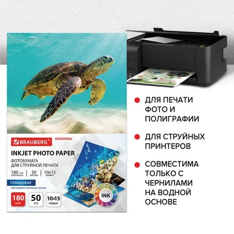 Фотобумага для струйных принтеров Brauberg 10х15 см, односторонняя, 50 листов, 180 г/м2