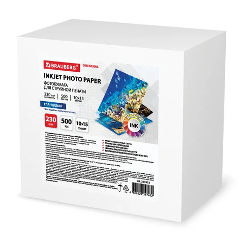 Фотобумага для струйных принтеров Brauberg 10х15 см, односторонняя, 500 листов, 230 г/м2