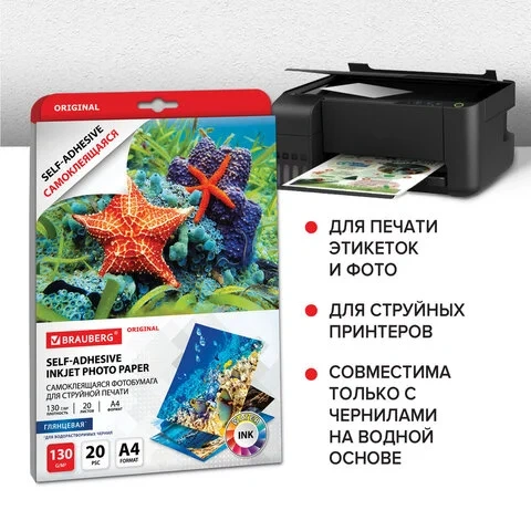 Фотобумага для струйных принтеров Brauberg А4, матовая, 20 листов, 130 г/м2