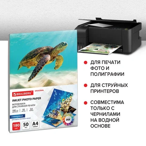 Фотобумага для струйных принтеров Brauberg А4, односторонняя, 50 листов, 180 г/м2