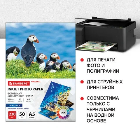 Фотобумага для струйных принтеров Brauberg А5, односторонняя, 50 листов, 230 г/м2