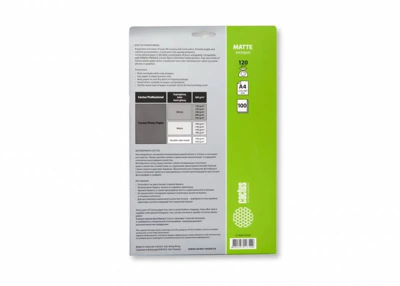 Фотобумага для струйных принтеров Cactus CS-MA4120100 А4, 100 листов, 120 г/м2, белая, матовая