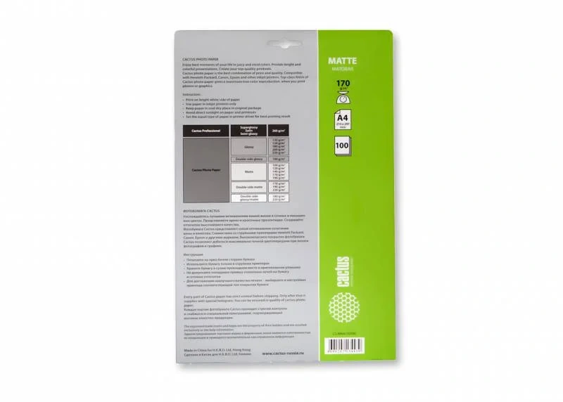 Отзывы о «Фотобумага для струйных принтеров Cactus CS-MA4170100 А4, 100 листов, 170 г/м2, белая, матовая»
