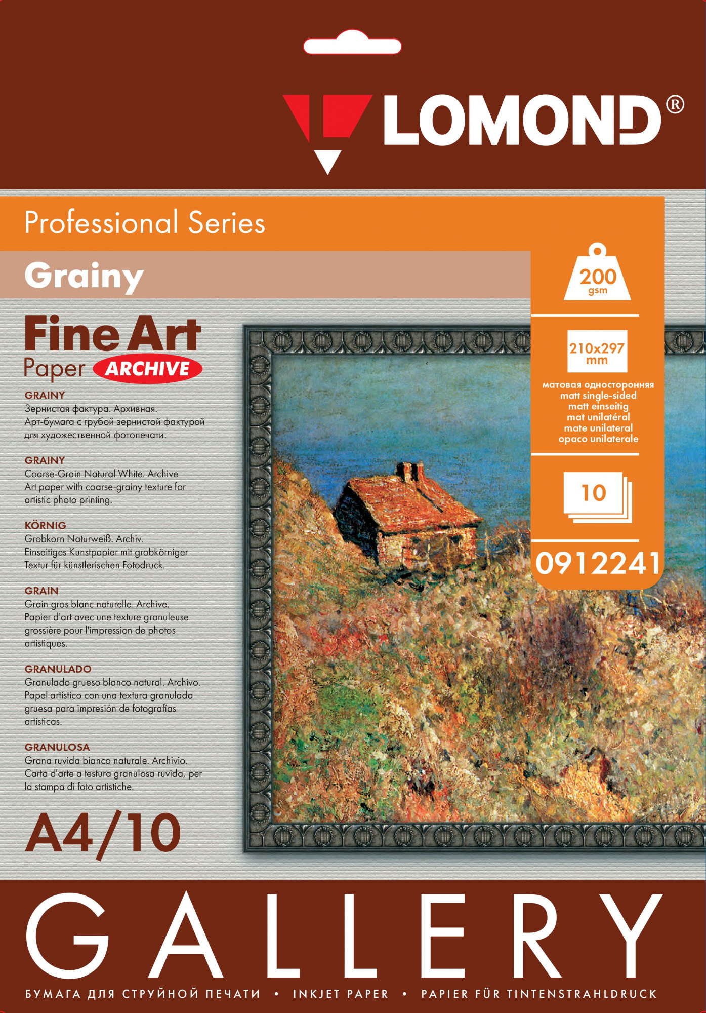 Фотобумага для струйных принтеров Lomond А4, 10 листов, 200г/м2, белая, зернистая, 0912241