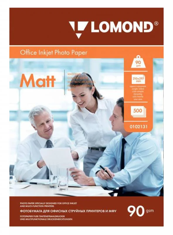 Фотобумага для струйных принтеров Lomond A4, 500 листов, 90 г/м2, белая, матовая, 0102131