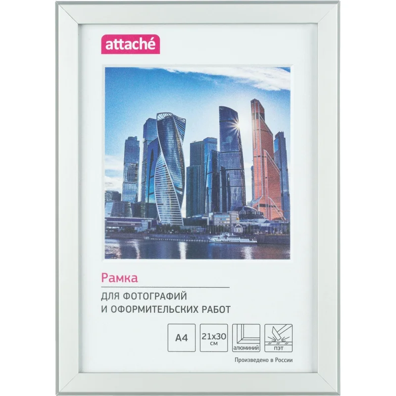 Рамка Комус (Attache) А4 21×30 см металлический багет 20 мм серебристая