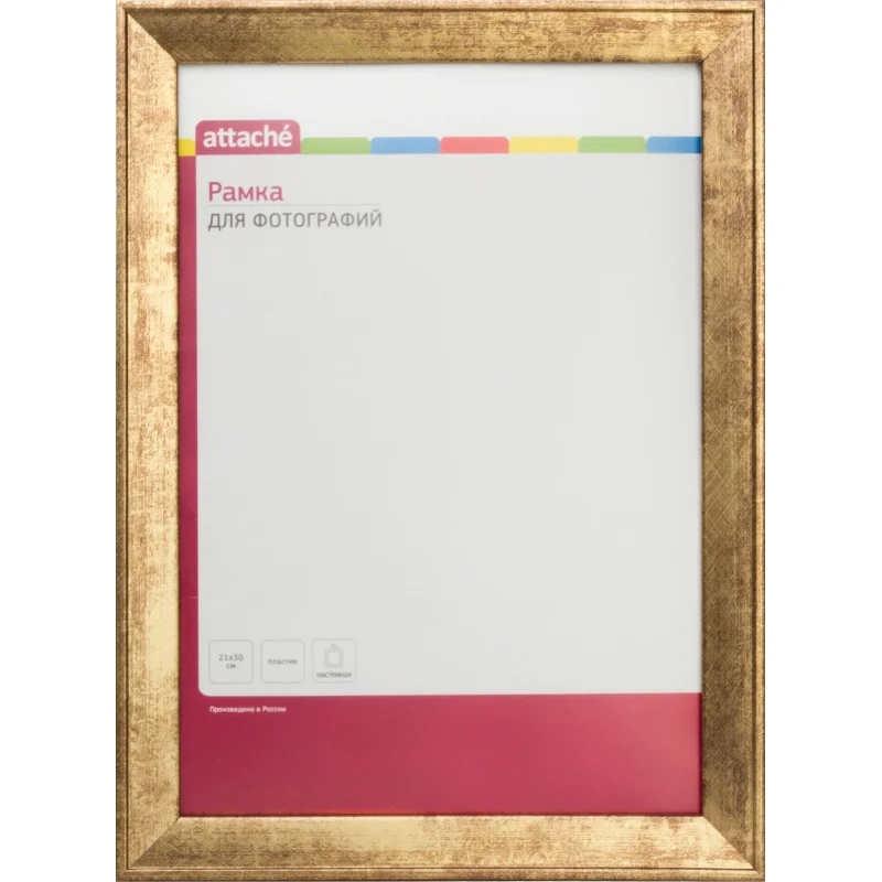 Рамка Комус (Attache) А4 21×30 см пластиковый багет 25 мм золотистая