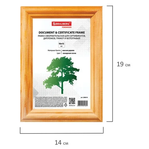 Рамка Brauberg Hit канадская сосна, 10х15см, дерево