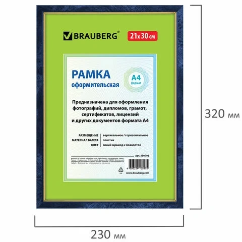 Рамка Brauberg Hit синий мрамор с позолотой, 21х30см, пластик