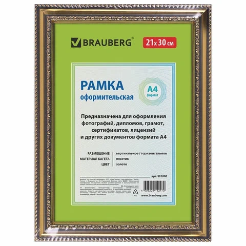 Рамка Brauberg Hit4 золото, 21х30см, пластик